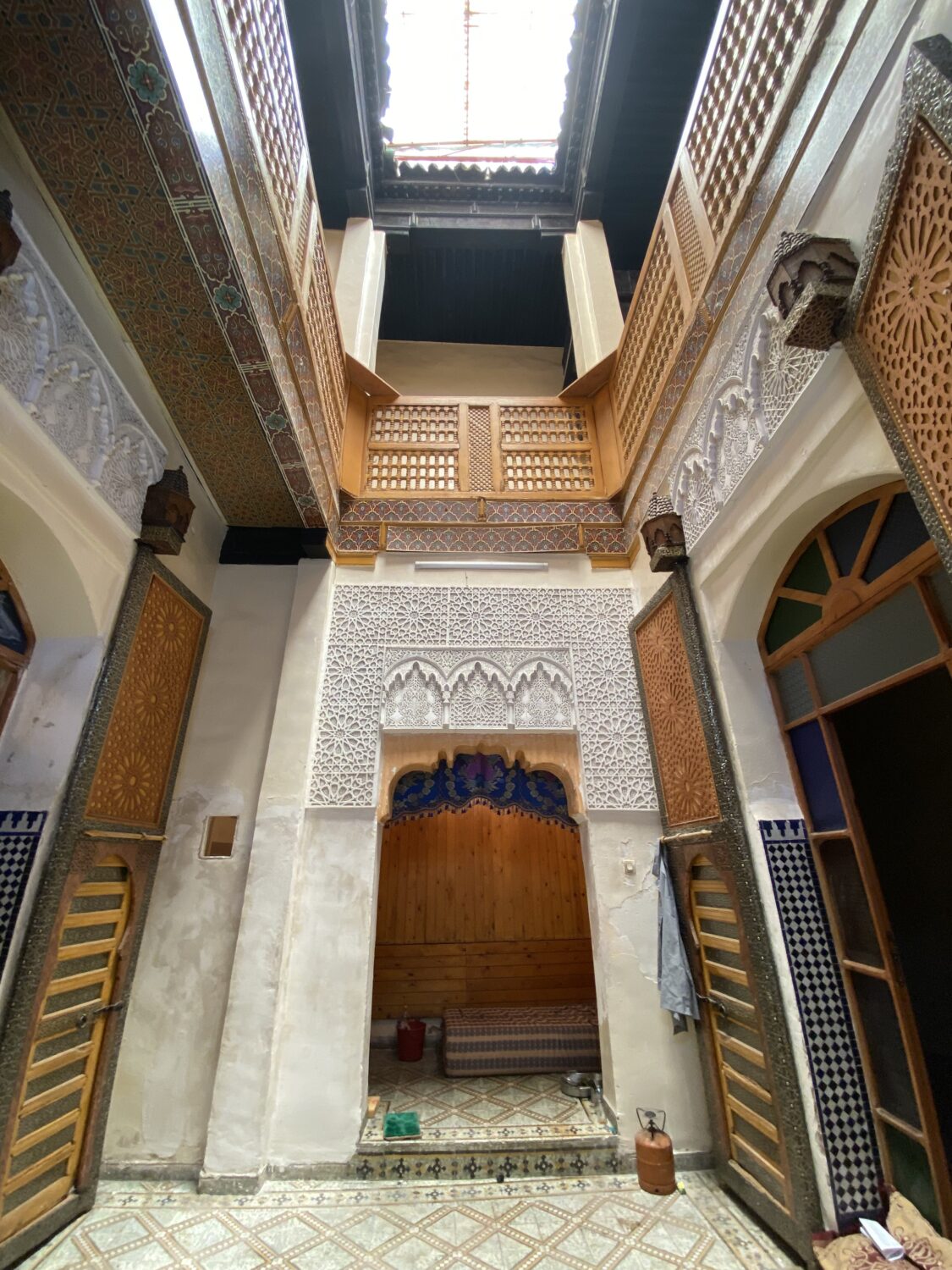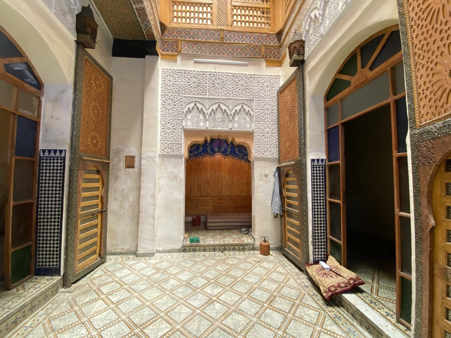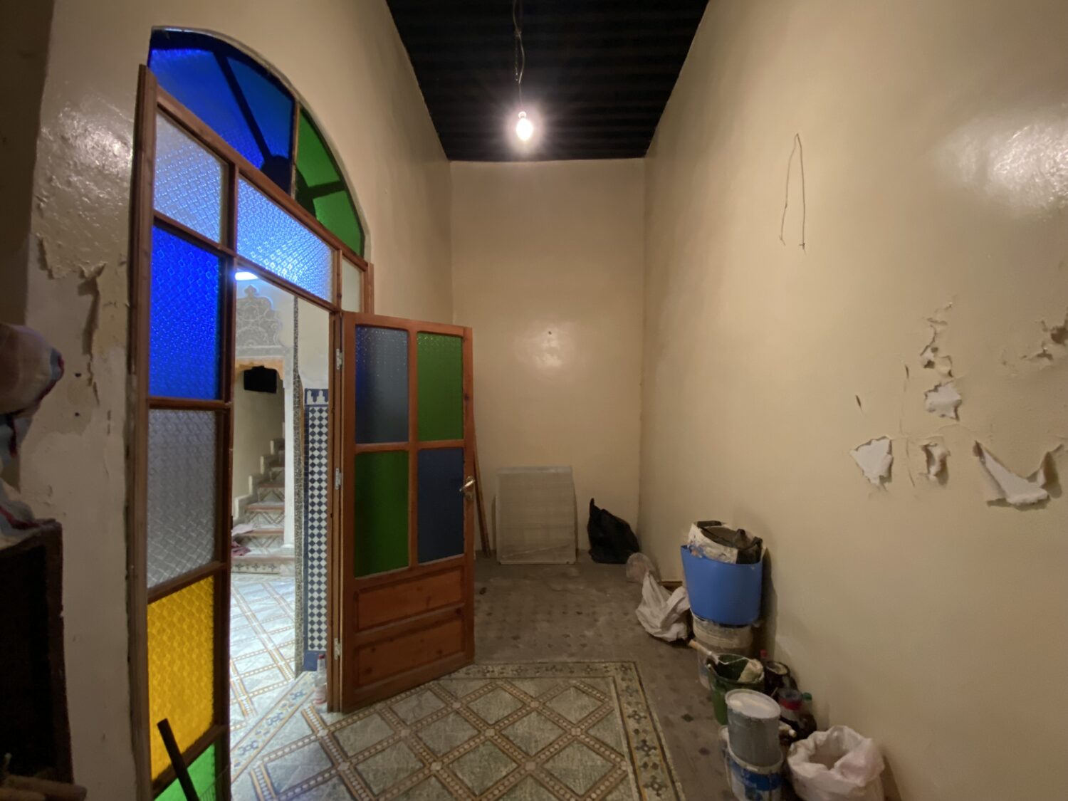 600.000 Dh – Dar 2236, Oued Rchacha 2236, Oued Rchacha Renovated traditional dar, with a lot of glass- and woodwork! Description This house has been partially renovated. The patio has been covered with new plasterwork. The woodwork, including the large wooden doors and balustrade, has also been replaced. The doors and windows on the first floor give the house their own unique style. The house is largely constructed of a combination of old cement tiles and zellige tiles. The house has a large number of big rooms, taking its size into account. The terrace is open and sunny. The house requires renovation to ensure comfortable living. You are very welcome to visit! Nr2236 Online20th of May 2025 LocationOued Rchacha TypeDar Date Surfaceapprox. 130 m2 Floors1 + terracce Salon2 Bartal1 Patio1 Kitchen2 Rooms6 big rooms Toilette1 Terrace1 Stairs1 Entrances1 Price 600.000 Dh Renovatedyes, partially To renovateyes Titledno Owner1 Operating permitno Airconditioningno Your name Your email Subject House (ex: 2149: Quettanine) Your message (optional)