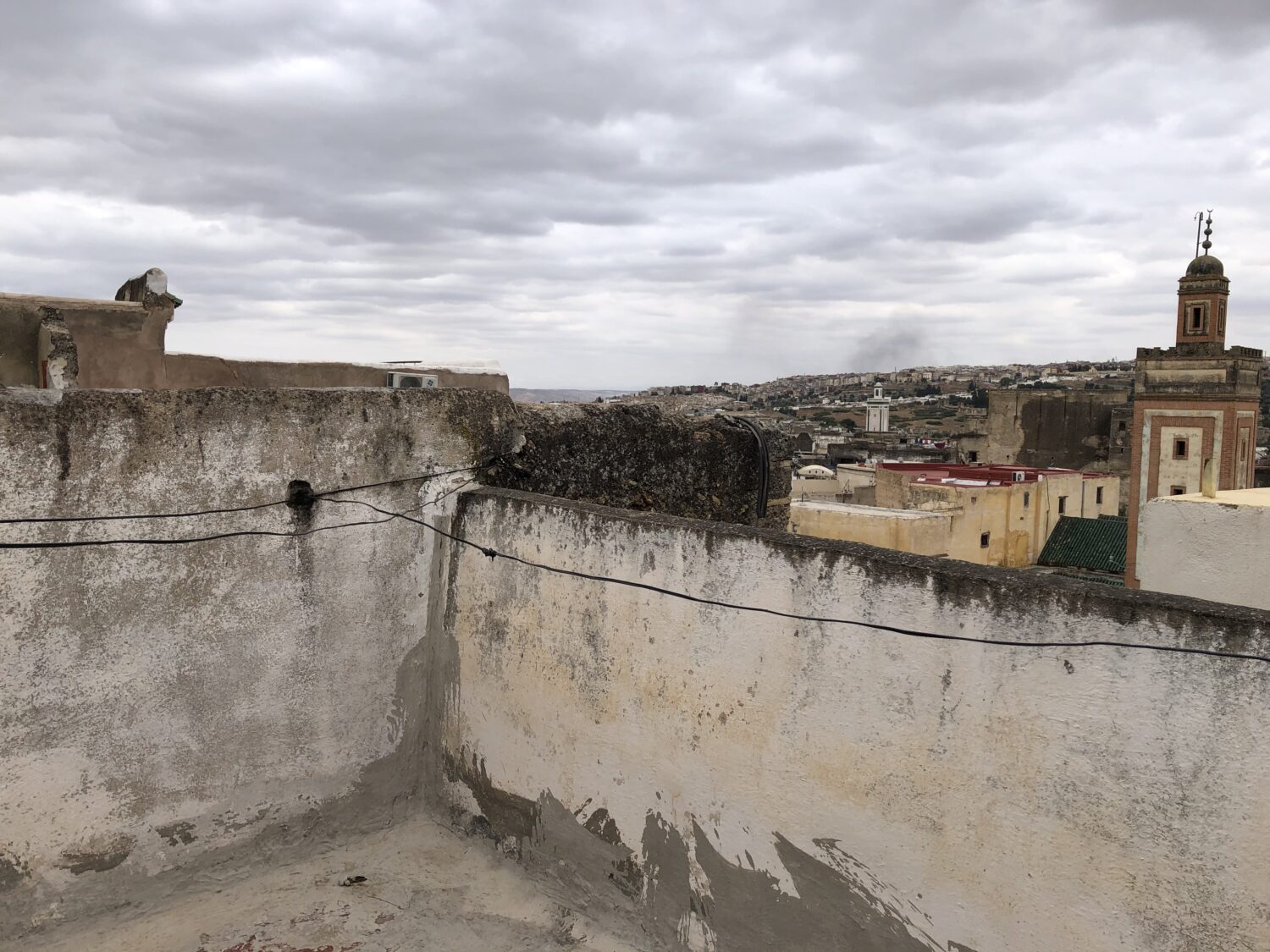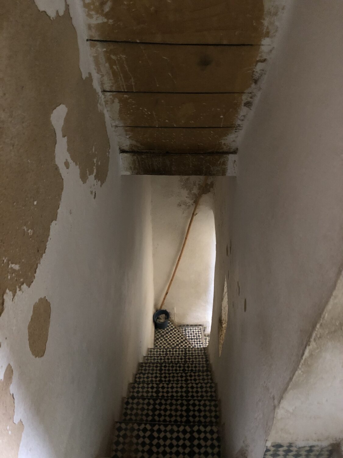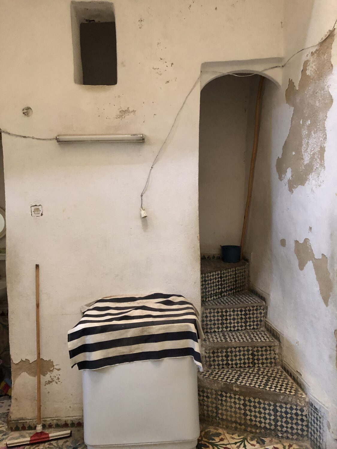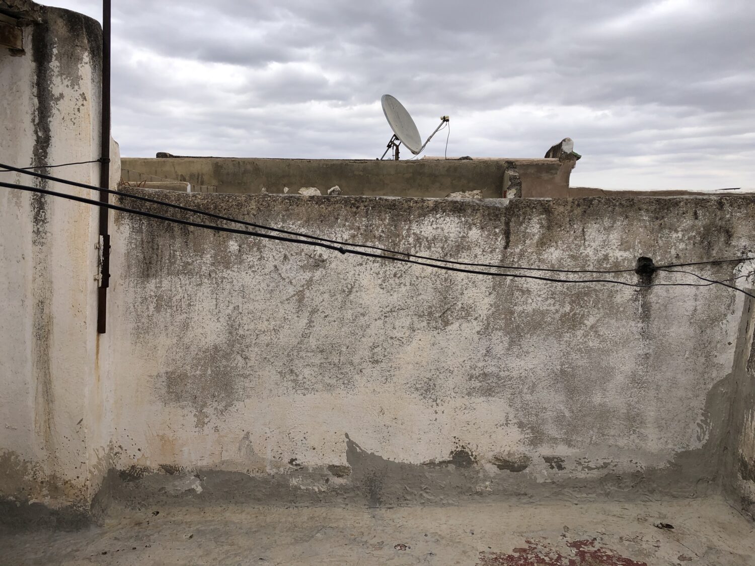 Petit Dar situé au centre de la Médina. Les plafonds en bois, les murs ( partiellement) et le sol de la terrasse ont été rénovés.