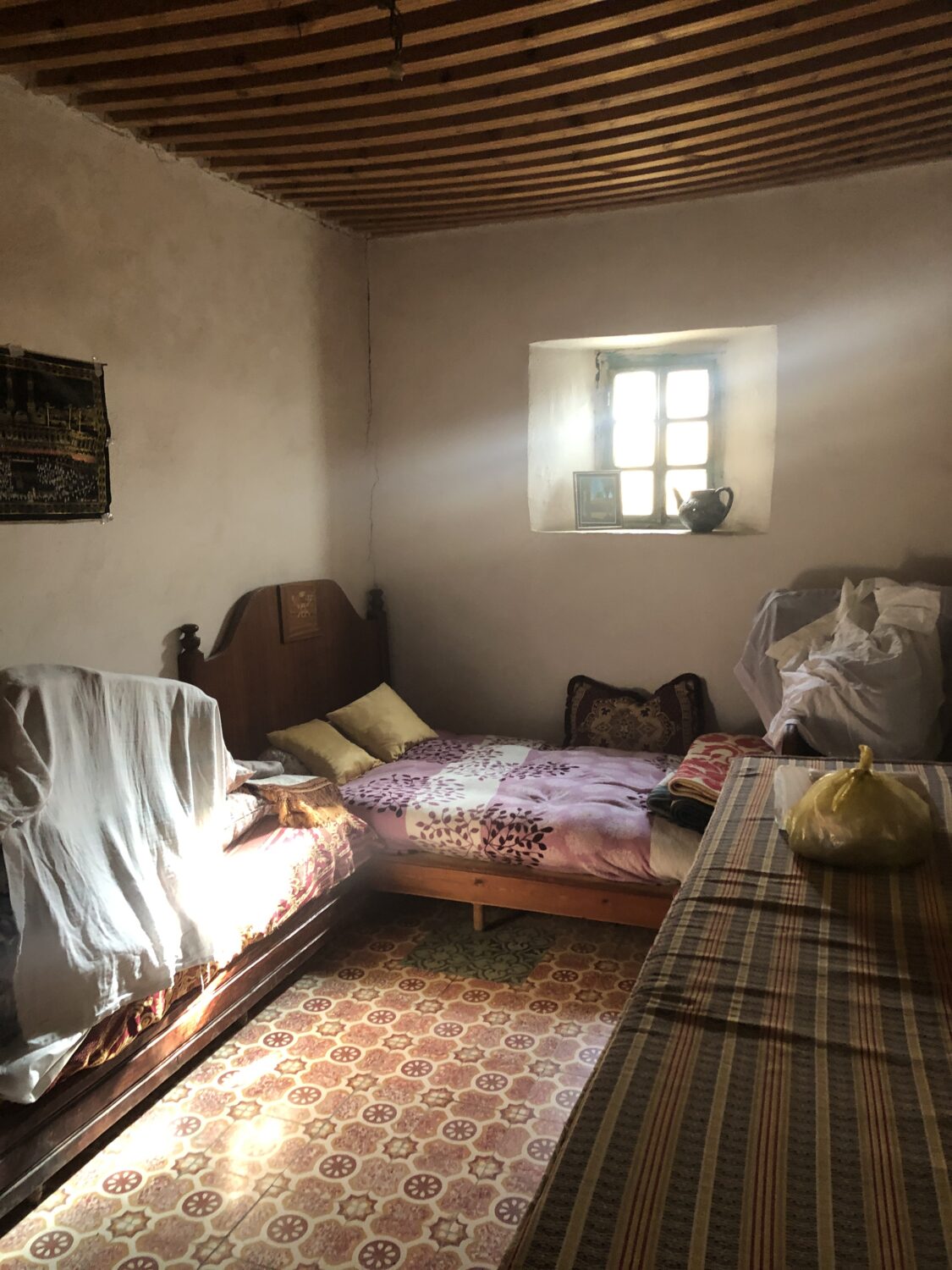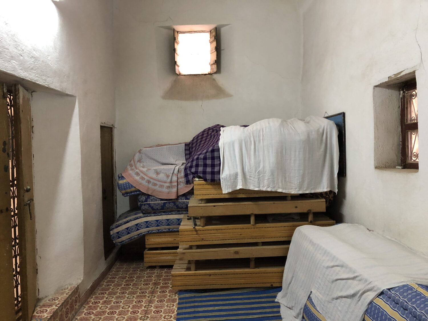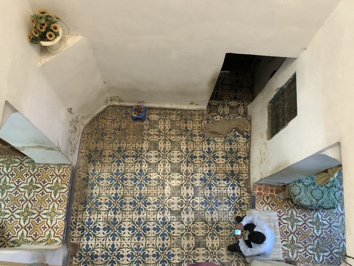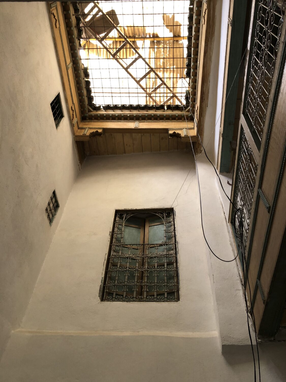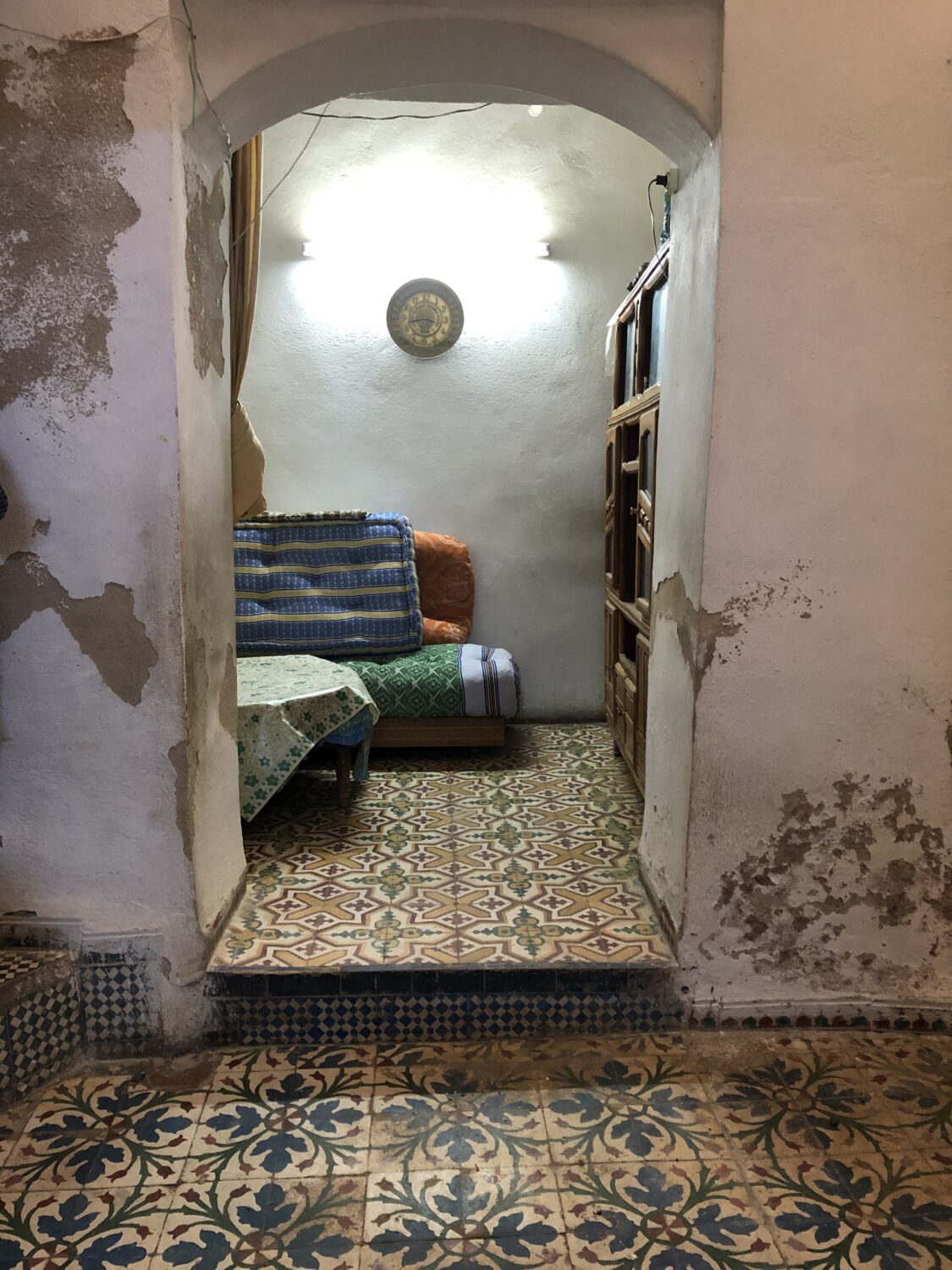 Petit Dar situé au centre de la Médina. Les plafonds en bois, les murs ( partiellement) et le sol de la terrasse ont été rénovés.